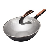 万代传章丘手工锻打老式镜面 有耳铁锅32cm+锅盖32c...